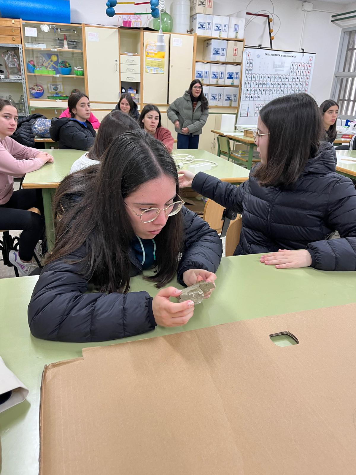 La niña en la ciencia tiene un papel fundamental, y en el IES Antonio María Calero, en la asignatura de Biología y geología 🧬 se fomenta su participación activa y su interés por descubrir el mundo que la rodea. A través del estudio de los fósiles, las alumnas aprenden cómo se reconstruye la historia de la vida en la Tierra, mientras que con el análisis de los animales comprenden la diversidad y la evolución de los seres vivos.