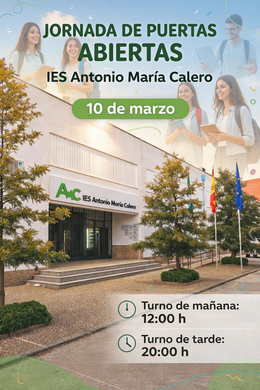 El próximo 10 de marzo celebraremos la Jornada de Puertas Abiertas del IES Antonio María Calero, una oportunidad perfecta para que las familias conozcan de primera mano nuestro centro. La jornada se desarrollará en dos turnos para facilitar la asistencia: …