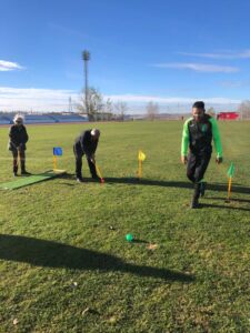 Hemos disfrutado muchísimo con juegos populares de su época como el aro guiado o el pingané y otros colectivos como el hockey adaptado o el golf.